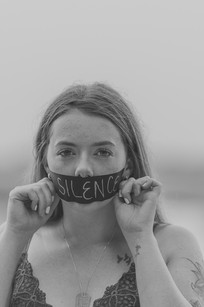 We then taped over her mouth with the word “Silence” written on it, which she later tore off in the photos—a visual metaphor for reclaiming her voice. A hand-painted banner reading “Fragile” repeated in a loop, echoing the quiet strength behind her vulnerability.