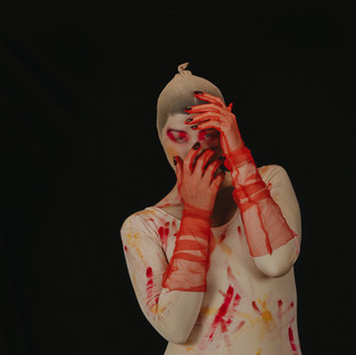 I was inspired for years by memorable images of ripped pantyhose stretched over people's faces, thick globs of lipstick, and chaotic splashes of colorful makeup. For Day One of my series, I set out to create my own interpretation. Something intentionally unsettling, visually striking, and impossible to forget.