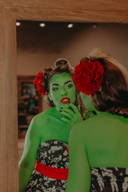 She trusted my suggestion to go all out with a bold, playful green, turning the classic pinup aesthetic into a sexy, fun zombie twist. A big shoutout to Jessi B Artistry for the makeup inspiration, it really elevated the concept. It was so bold and unexpected, and added such a fun twist to the whole shoot.